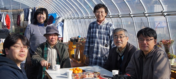2012年11月14日は、前日の仙台(レポート1)から陸前高田市を訪れた。同市で被災した吉田正子さんは、被災したご自身の住宅跡や周辺被災地を花いっぱいにされている。花っこ畑の会とともにさまざまなボランティアの方々が、土づくりから携わり、「希望の庭」など被災地を花の草原にする運動をしている。滋賀県立大学の柴田いづみ教授は、なんじゃもんじゃの木苗と花苗を届けた際に、吉田さんが「庭は家があってのことなんですよね」と話されことが心に残り、「小さな家」を寄贈することになった。花には水が必要で、水を入れたタンクを置いたり、遠い被災しない高台からホースで持って来たりと、苦労している。「小さな家」に雨水活用の設備を備え、ボランティアで来てくださる方の象徴的存在となってほしいという吉田さんの思いもある。明日には出来上がる小屋を柴田教授のところの学生、大工さんたちが追い込みをかけていた。